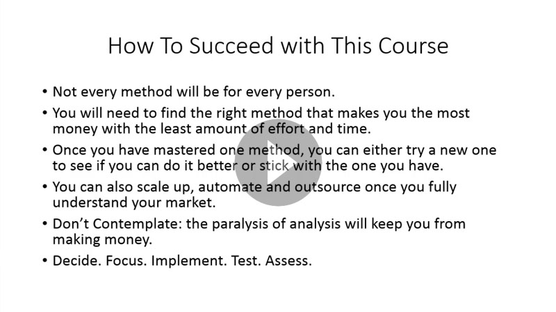 • We'll discuss your mindset and how you should approach every money making method, not just in this course but every method you come across online.