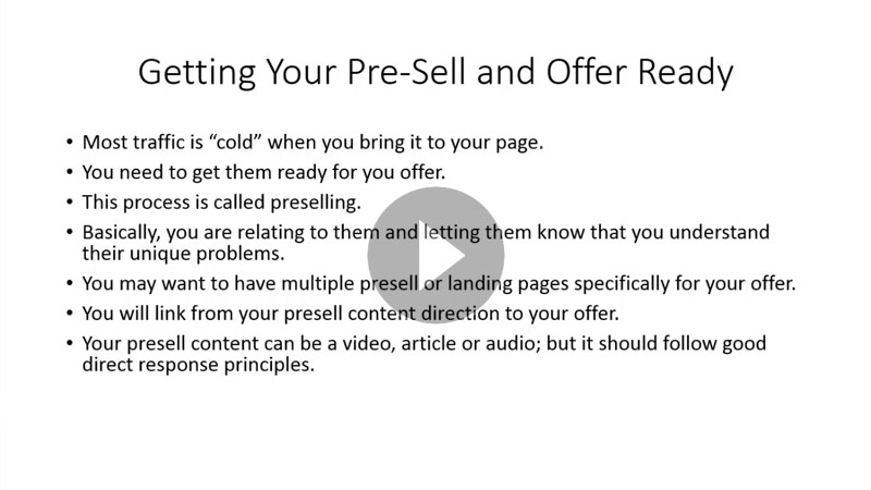 • Find out the 3 things you need as a minimum to make a great pre-sell page and why you shouldn't over-sell early on.
