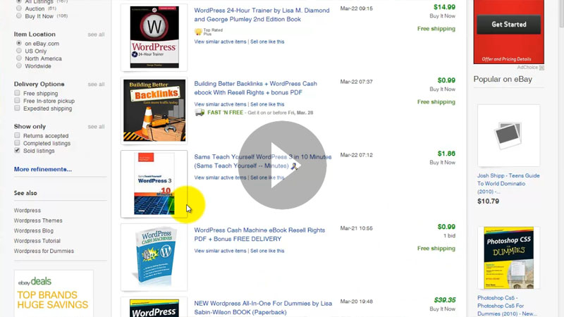 • Watch a live example of market research on eBay to find out what people are selling, how they're selling and their prices.